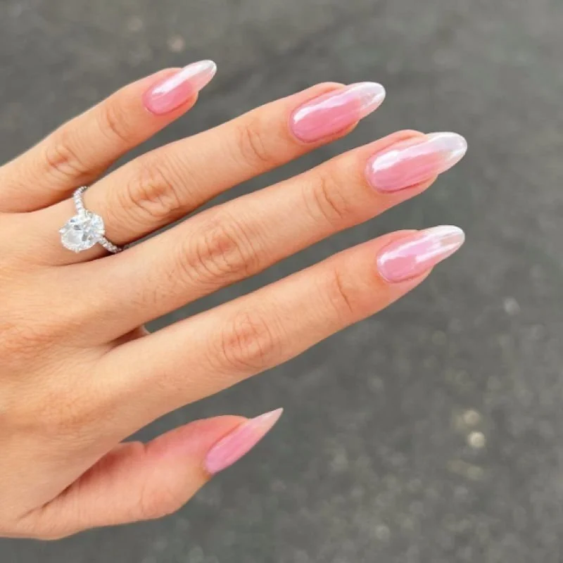 Be it glazed donut nails, milky nails, or pearlescent nails, the enduring trend of 2023 revolves around subtle, translucent shimmer that's just barely there.